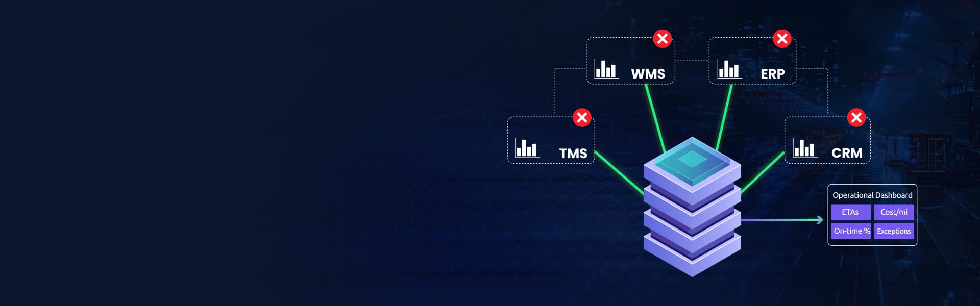 For instance, dispatch data might live in the TMS, inventory metrics in the WMS, and order updates in the CRM. No single view connects them, leaving decision-makers blind to the complete operational picture.